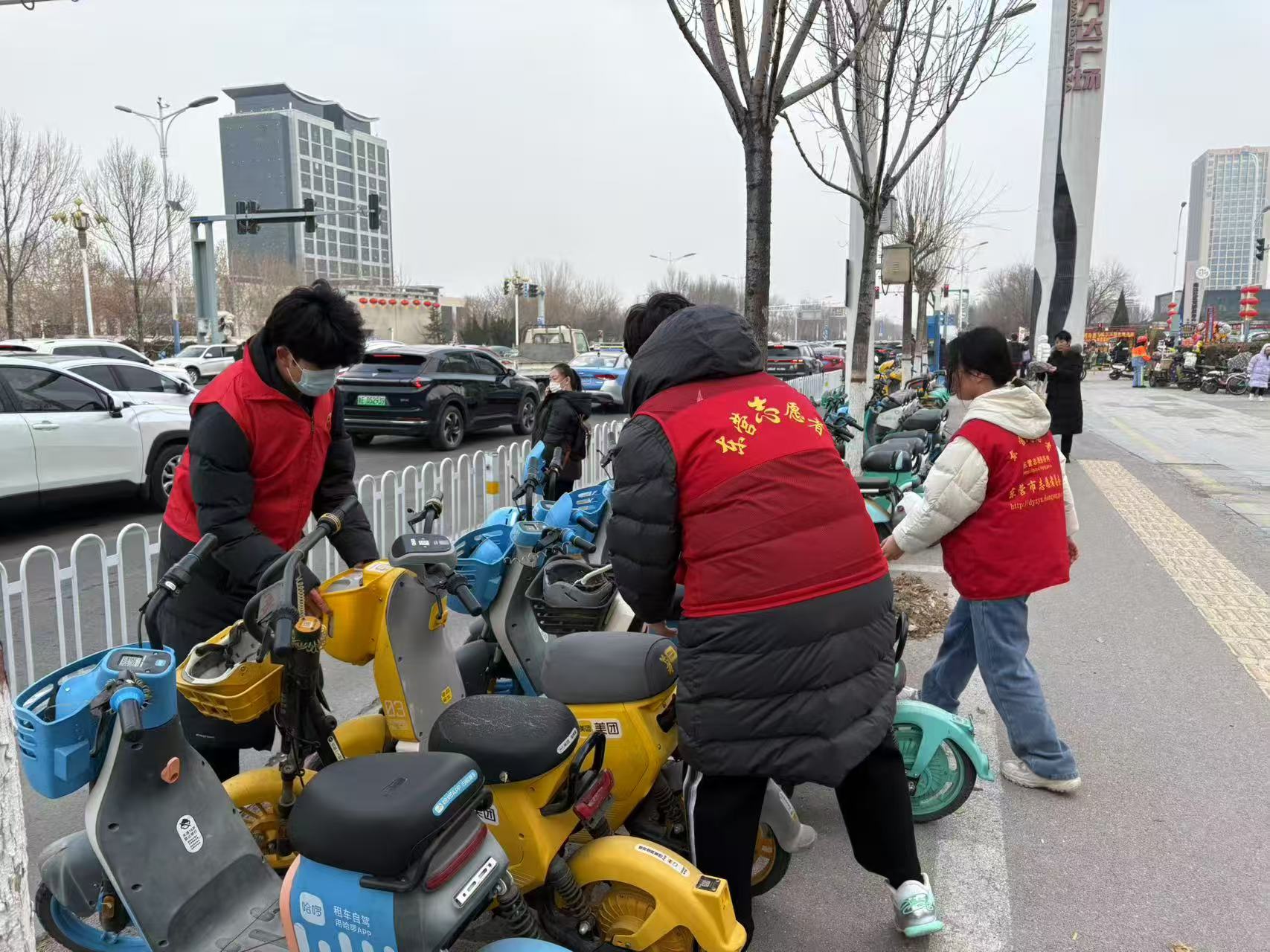 服务队队员们首先对社区附近的共享单车进行了集中整治,制止乱停乱放行为,方便居民出行。他们深入社区各条街道和共享单车停放点,仔细排查每一处停放区域,将乱停乱放的车辆重新摆放至可停放区域,并对车辆进行了清洁和维护,确保单车外观整洁、功能完好。通过队员们的努力,社区周围的共享单车停放秩序得到了显著改善,车辆摆放整齐有序,社区环境焕然一新。随后,队员们向居民发放环保宣传单,讲解共享单车规范停放的意义,以及绿色出行对环境保护的重要性。他们通过生动的案例和数据,向居民普及了当前环境问题的严峻性,呼吁大家从身边的小事做起,比如规范停放共享单车、减少使用私家车、选择公共交通或骑行等,共同为减少碳排放、改善空气质量贡献力量。经过队员们的宣讲,居民们意识到了绿色出行不仅仅是一个口号,更是实现可持续发展的重要措施,环保事关每一个人,纷纷许下了“环保从自己做起,从生活中的点滴做起”的郑重承诺。