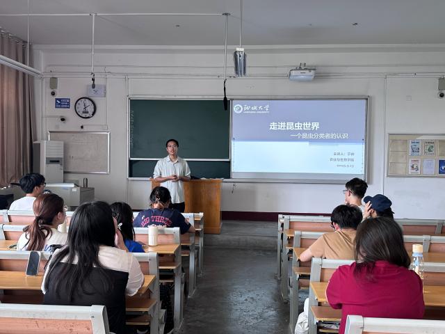 为激发青年学子对自然科学的探索热情,培育生命敬畏意识与生态保护责任感,5月15日,bat365正版唯一官网生物践行者协会于东校区2号教学楼509教室举办“博雅大讲堂:走进昆虫世界”主题活动,bat365正版唯一官网于帅老师担任主讲,带领同学们深入探索昆虫世界的奥秘,感受生命的奇妙与自然的和谐。