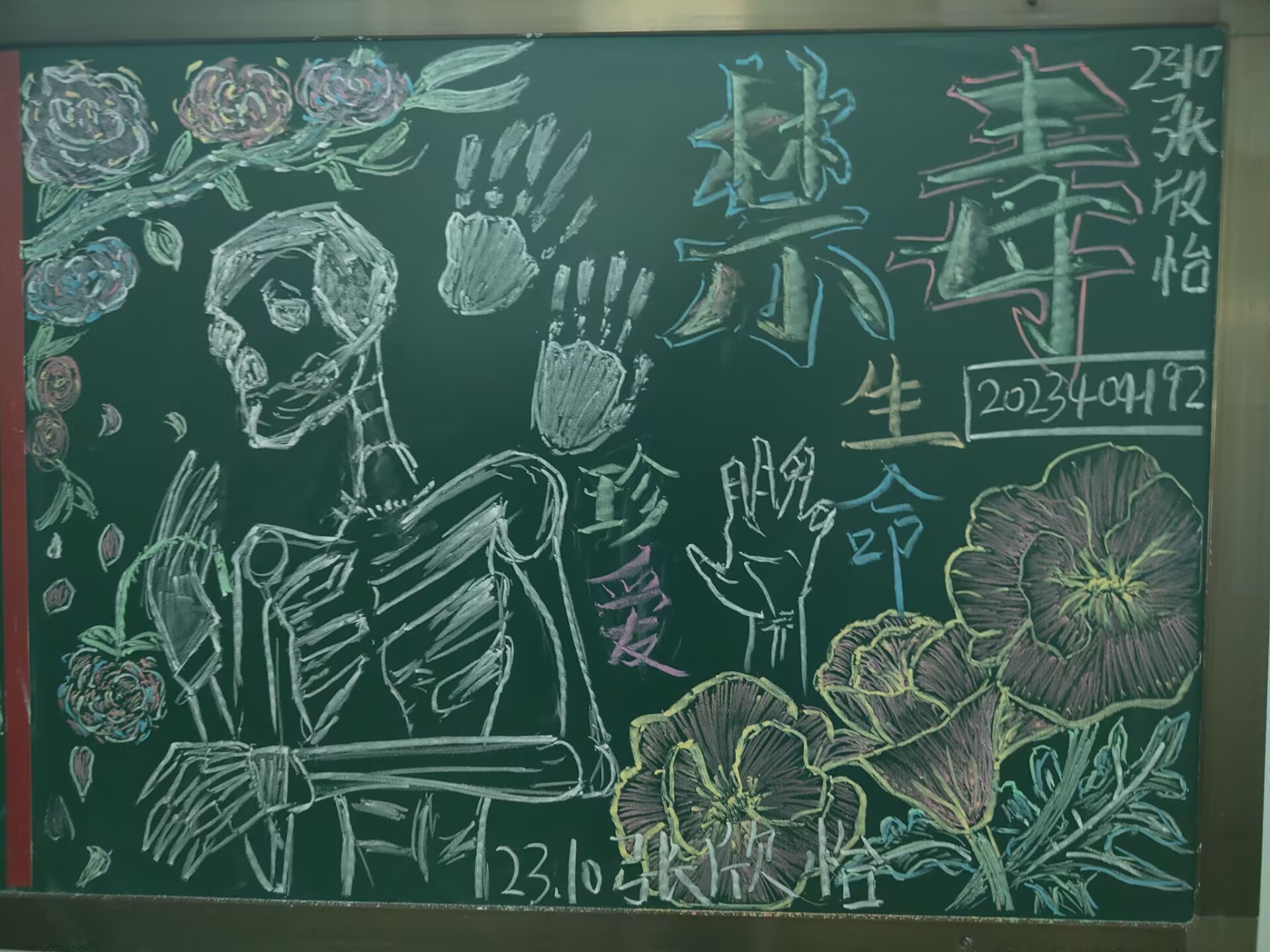 同学们手持彩色粉笔,绘制出一幅幅生动的作品,有的绘制生动形象的禁毒漫画,有的则撰写醒目的警示标语,还有的通过图文结合宣传毒品危害,兼具教育性与艺术性。活动现场吸引了众多师生驻足观看,不少师生主动参与互动,对黑板报内容展开讨论。一位参与活动的同学表示:“通过这次活动,不仅加深了我对毒品的认识,更体会到用创意传递正能量的意义。”