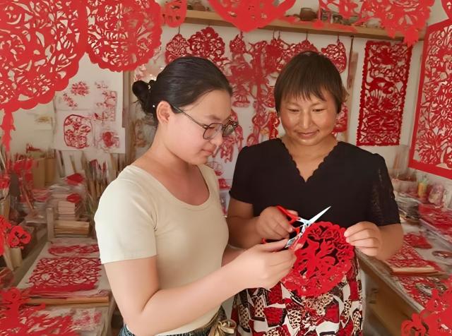 在民俗技艺体验现场,服务队成员化身为“文化小导师”,手把手指导参与者体验民俗技艺。在剪纸教学环节,成员们耐心地向参与者讲解剪纸步骤,从折纸、画图到裁剪,每一个环节都细致入微。参与者拿着自己亲手剪出的作品,脸上洋溢着自豪的笑容。这些作品承载着大家对民俗技艺的好奇与热爱,也成为了他们与传统文化亲密接触的珍贵见证。