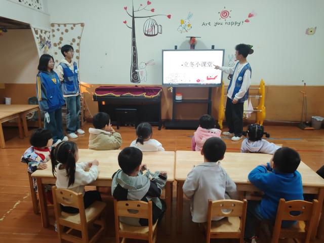 活动伊始,志愿者们准备了丰富多样的体验材料,通过为小朋友们们讲解PPT、播放立冬主题动画片,以趣味方式科普立冬的由来及相关习俗,开启了一场趣味盎然的立冬知识探索之旅。