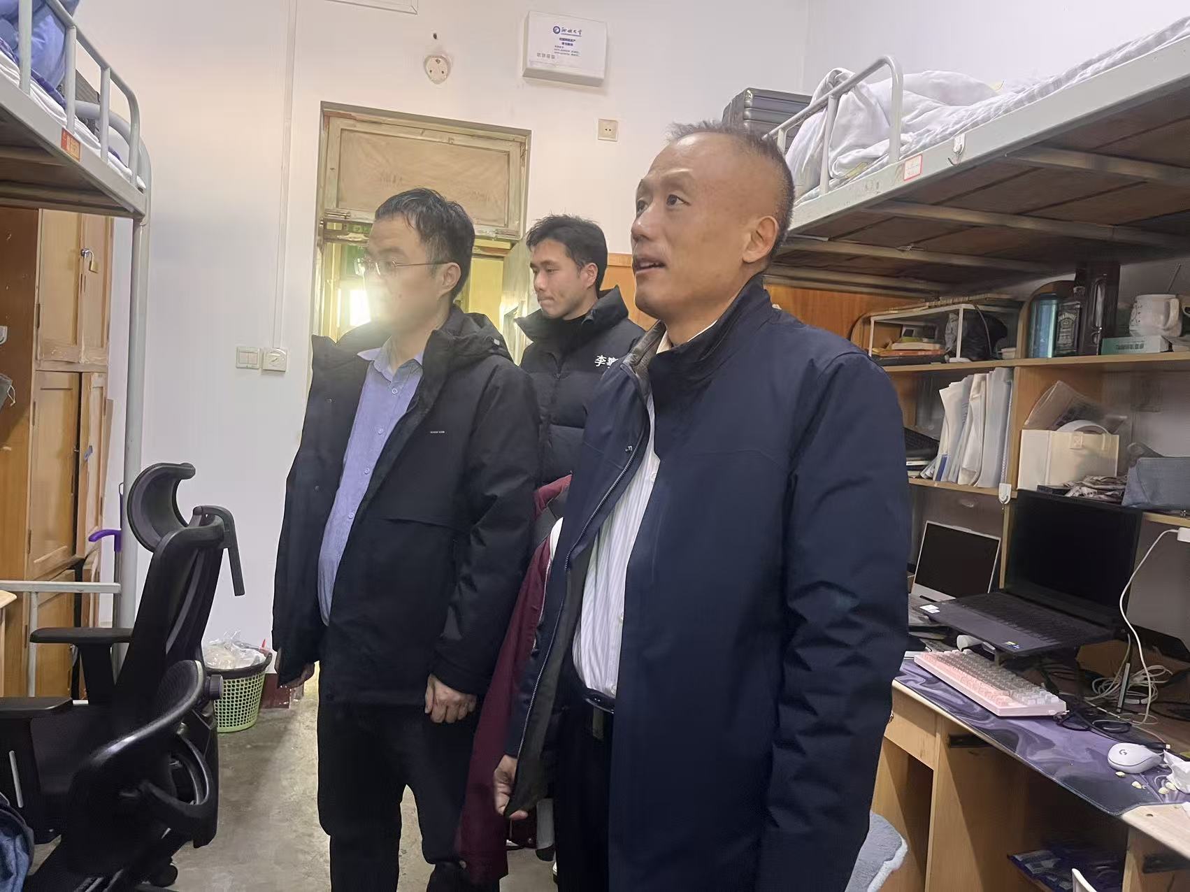 走访过程中,学院领导和老师逐间查看宿舍通风环境、物品摆放情况,重点排查香烟、打火机等违规物品,同时向同学们耐心讲解吸烟的危害:宿舍属于密闭空间,吸烟不仅会损伤呼吸道、增加健康风险,烟头明火更易引发火灾等安全事故,是校园安全的“隐形炸弹”。从宿舍书桌到床铺被褥,再到阳台角落,排查行动既“严标准”又“有温度”——对发现的问题现场提醒整改,同时倾听同学们的生活困扰,引导大家从“被动禁烟”转向“主动拒烟”。现场还发起“无烟宿舍”承诺倡议,同时鼓励大家互相监督、共同养成健康生活习惯,比如用嚼口香糖、户外运动替代吸烟行为等健康小妙招,让拒烟从“理念”变成了可践行的日常。