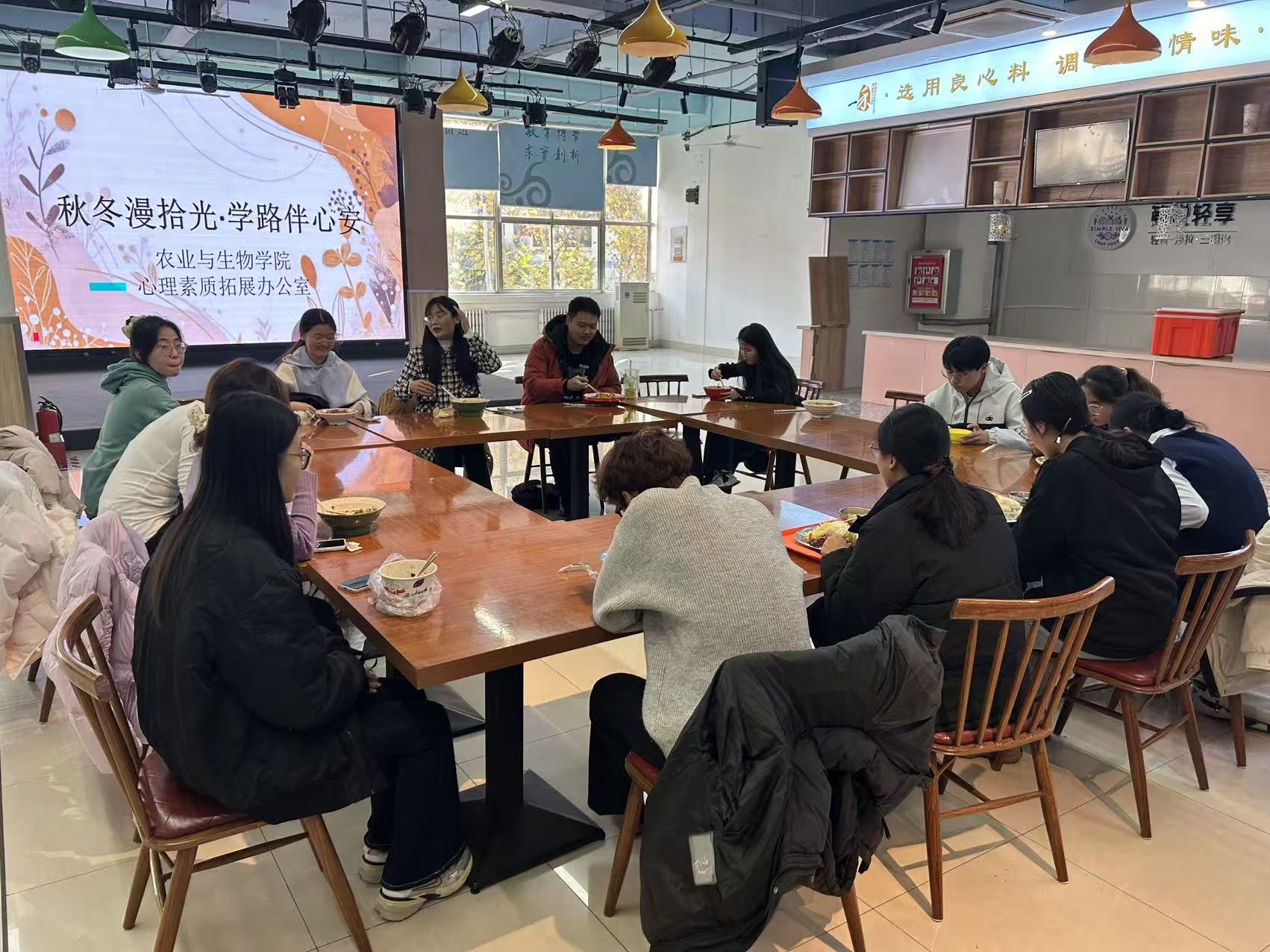 为进一步深化学风建设,筑牢学生心理健康防线,11月21日,bat365正版唯一官网于bat365正版唯一官网东校区翰苑餐厅二楼举办“秋冬漫拾光·学路伴心安”主题餐厅沙龙活动。bat365正版唯一官网心理辅导员管玉静出席本次活动。