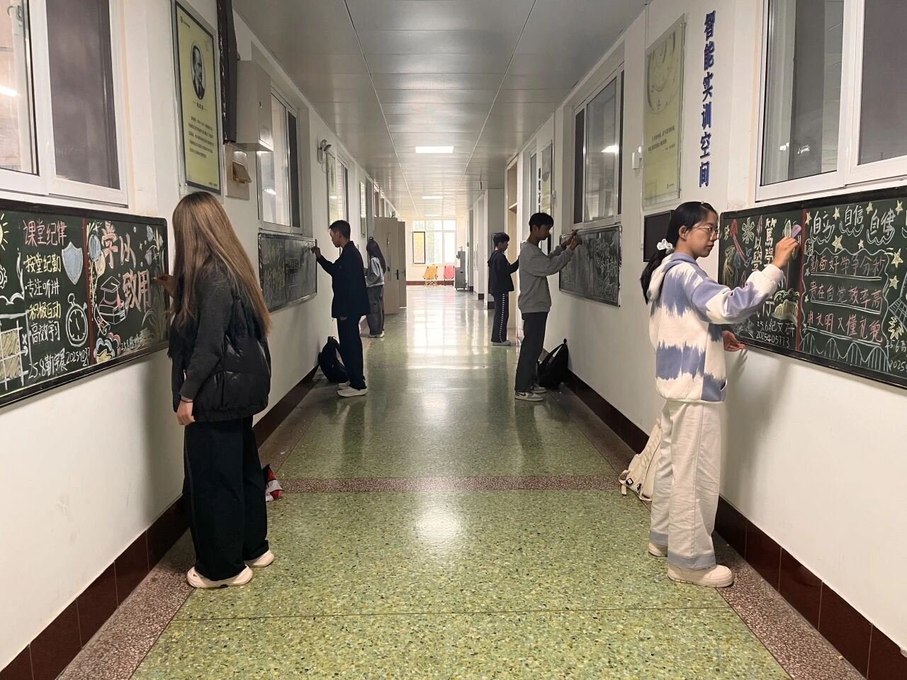 为激发学生学习热情,增强班级凝聚力,营造良好的学风氛围,10月18日,bat365正版唯一官网于东校区2号教学楼4楼走廊举办“笔墨传学风,板上育新人”学风建设主题黑板报创作活动。