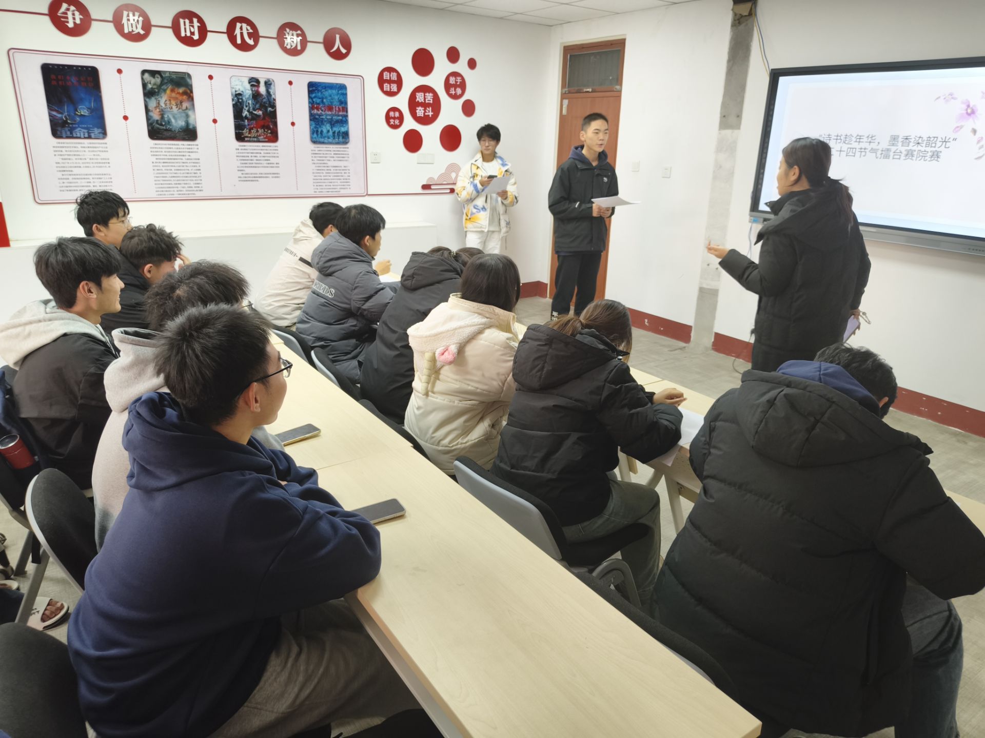 为传承中华优秀传统文化,深入挖掘二十四节气文化内涵,增强学生的文化自信与文学素养,12月19日,bat365正版唯一官网于群星16先锋影院举办了“诗书趁年华,墨香染韶光”二十四节气诗词擂台大赛院内选拔赛。