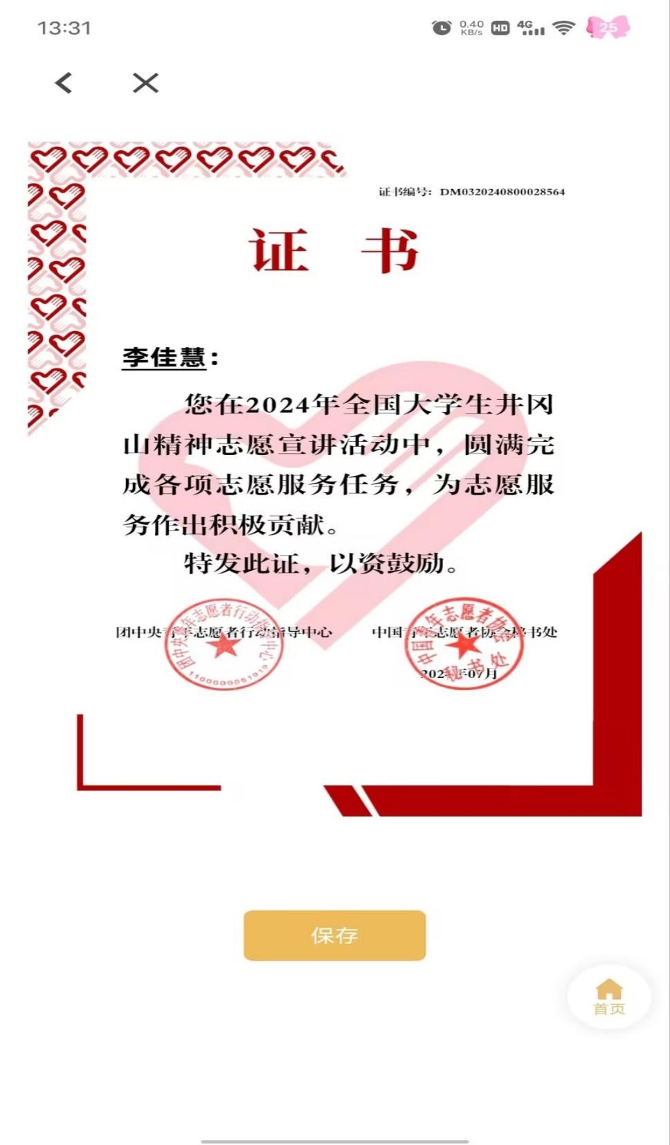 bat365李佳慧同学在2024年全国大学生井冈山精神志愿宣讲表现优秀,对该同学予以祝贺表彰。