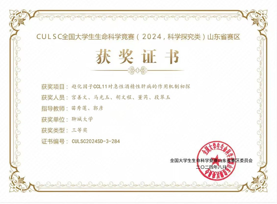 bat365胡文程同学在全国大学生生命科学竞赛山东赛区中荣获三等奖,对该获奖同学予以祝贺表彰。