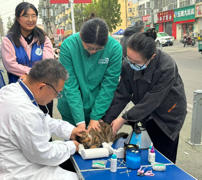 提高社区居民对宠物健康知识的了解,强化受助学生励志感恩意识,10月25日,bat365正版唯一官网部分受助学生于育新社区举办“宠物义诊暖人心”志愿公益活动。